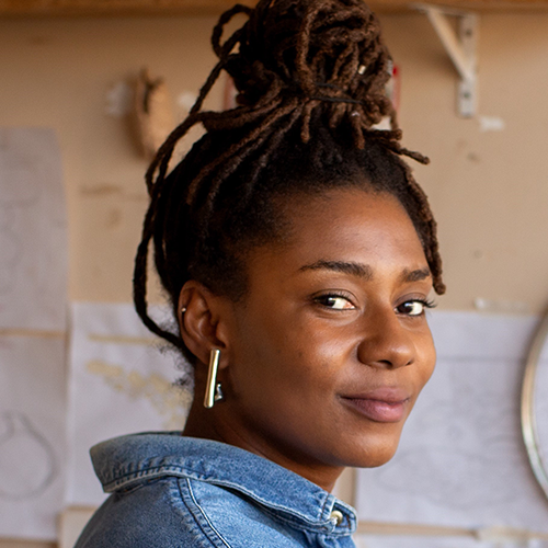 Sou natural de uma comunidade chamada Jardim Catarina, onde vivo até hoje. Sou artista plástica, arte educadora e jornalista especializada em Literaturas Africanas pela UFRJ. Minha trajetória na cerâmica se inicia em 2016, quando, através da literatura angolana, vi no ''chão de barro vermelho'' uma memória afetiva que vai além da lógica de tempo que conhecemos. A partir disso busquei estudas a argila e suas possibilidades de transformação, passando por formações em diferentes instituições até, por motivos financeiros, precisar focar nas pesquisas e práticas de quintal. Desde então tenho uma produção que tem como principal foco pensar o objeto de cerâmica como um recorte do tempo, espaço, subjetividade e corporeidade. Meus trabalhos carregam cores e formas que fazem alusão a natureza e seus elementos primordiais. A cêramica já me levou para lugares que nunca imaginei estar, desde a sala de aula na escola que minha mãe é professora, até o outro lado do mundo. Atualmente meus trabalhos em cerâmica se desdobram em vasos, painéis, instalações de parede e/ou suspensas.